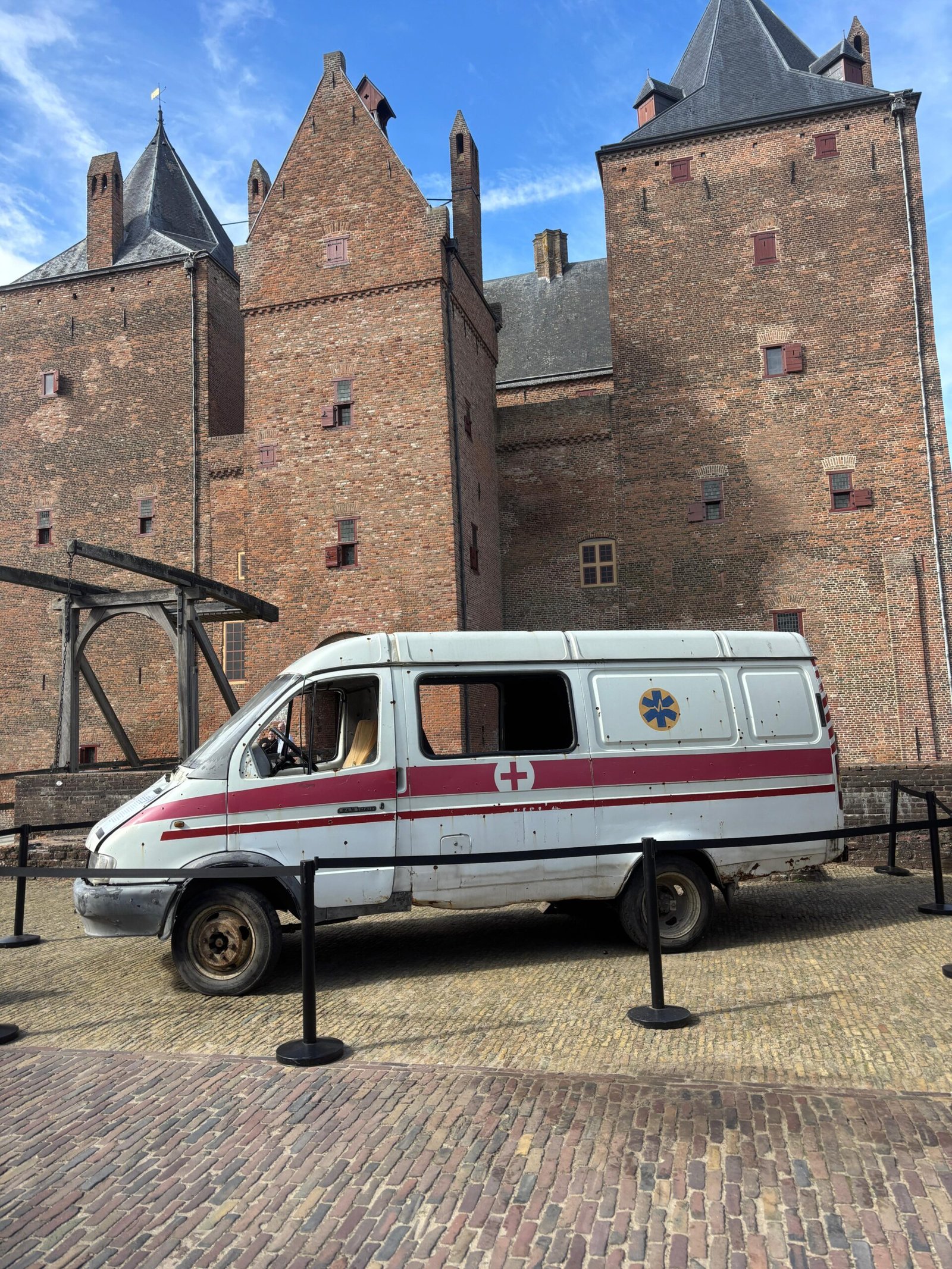 Kapotgeschoten ambulance van Steun Oekraïne heeft plek in Slot Loevestein
